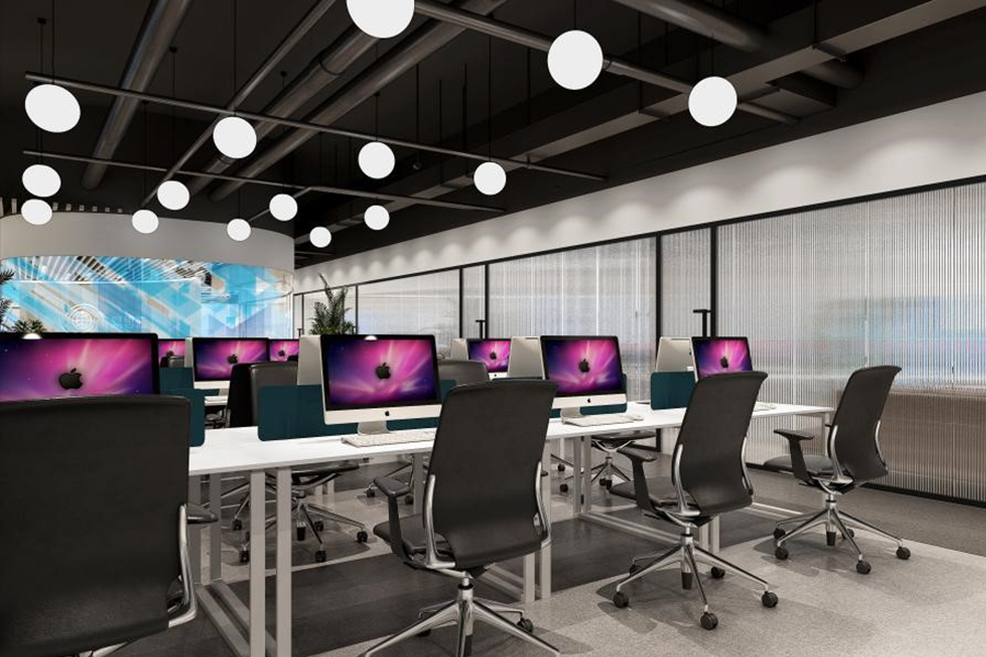 任务场合表现了一种付与小我权利和晋升本地抽象的休会,同时与品牌文明坚持分歧。是以,自力的人成为咱们设想的焦点,经由过程点状面得碰撞来塑造室内空间。