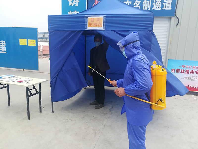 防疫消毒棚。现场防疫第(di)一道樊篱,一切停工职员(yuan)及外访(fang)职员(yuan)都须要(yao)🌱在此处接管体(ti)温检测(ce)及消毒,及格前(qian)方能(neng)挂号入场。