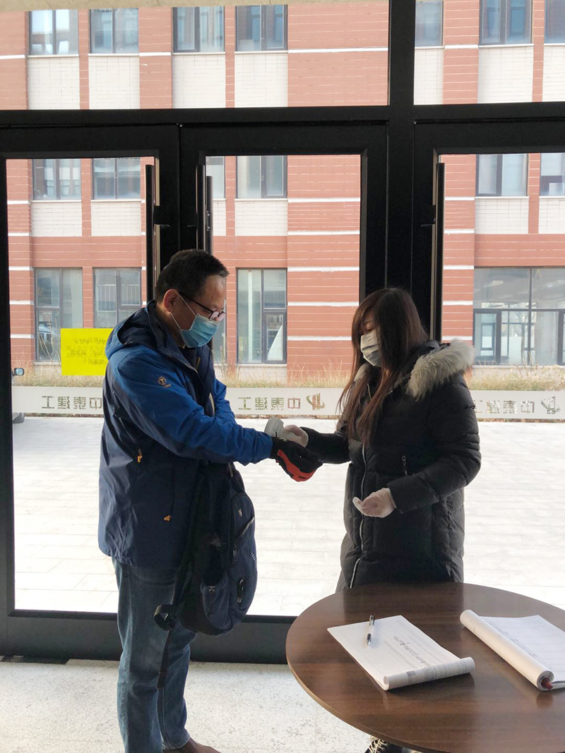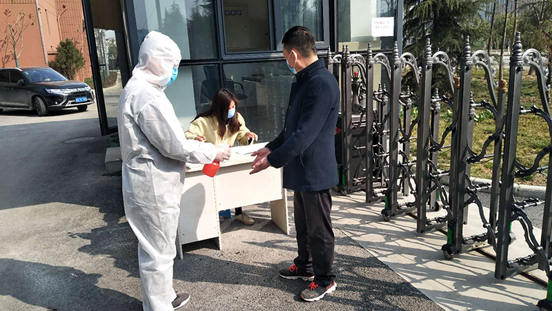 严控收支,守好第一关。每个收支公(gong)司的职员,都要(yao)做(zuo)好小我信息ꦺ挂号、满身(shen)消毒、体(ti)温丈量(liang)、佩带口罩等平常防疫任务。