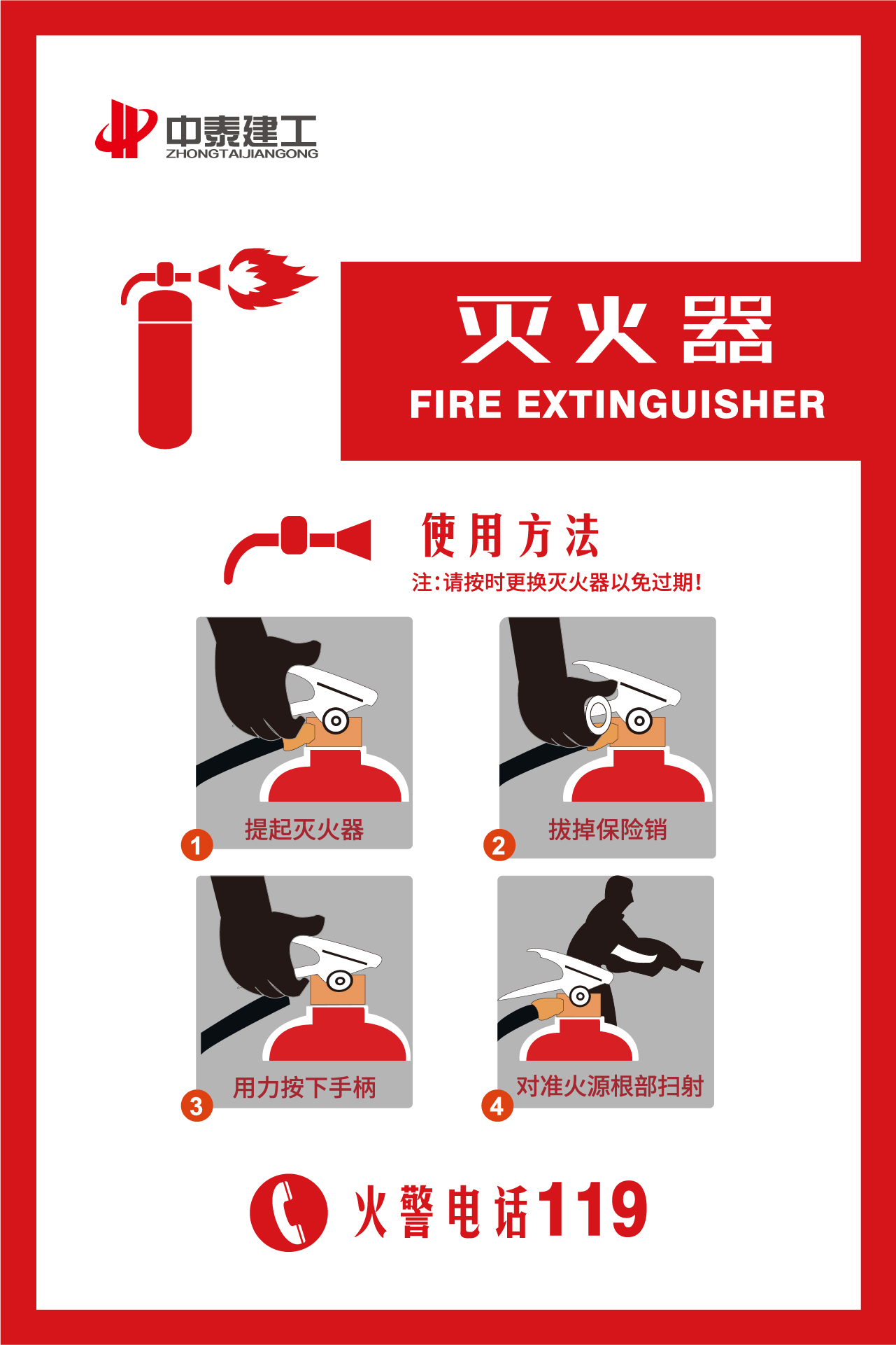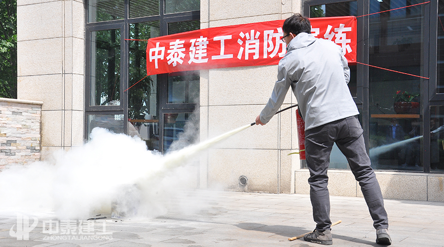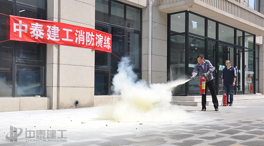 下图为中泰建工员工对罕见的干粉灭兵器停止练习树模: